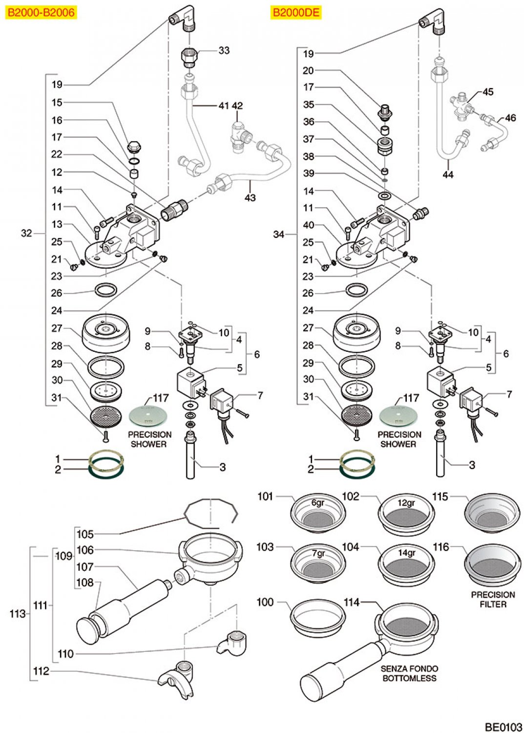 8001255 Bezzera BZ07 BZ10 BZ99 Siebträger bodenlos