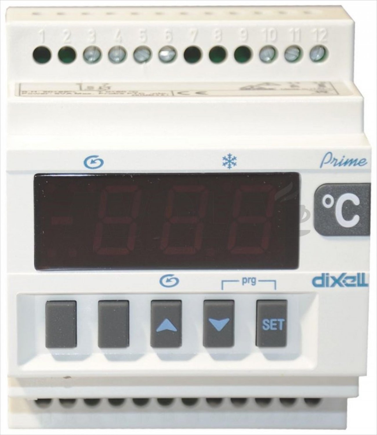 230V 50/60Hz|1 relè 20A per compressore|1 relè 8A per agitatore|1 entrata digitale configurable|1 sonda NTC/PTC (non compresa)|montaggio su guida DIN (4 moduli)