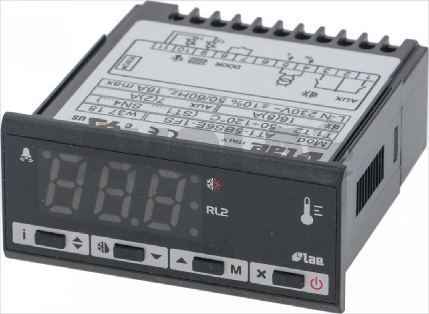 230V 50/60Hz|1 Relaisausgang 16A für Kompressor|1 Relaisausgang 7A per aux|1 Eingang Mikrotür|2 NTC/PTC Sonden auswählbar (nicht inbegriffen)|Serieller TTL-Ausgang|Vorder Maße 77 x 35 x Tiefe 70 mm|Einbaumaß 71x29 mm
