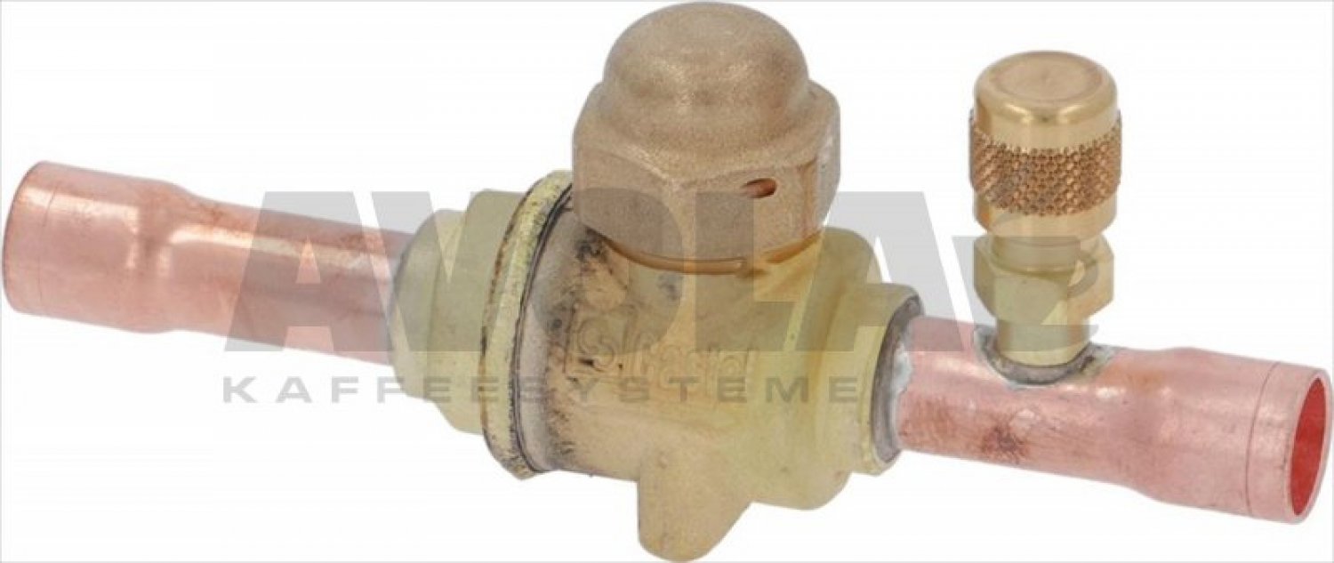 Kugelhahn mit Serviceventil|Anschlüsse ODS ø 12mm|HFKW (R134a, R404A, R407C, R410A, R507)|HFO und Gemische HFC/HFO (R1234ze, R448A,|R449A, R450A, R452A, R513A|Max. zulässiger Druck PS = 45 bar.|Zulässige Temperaturen TS = -40 / +150 °C