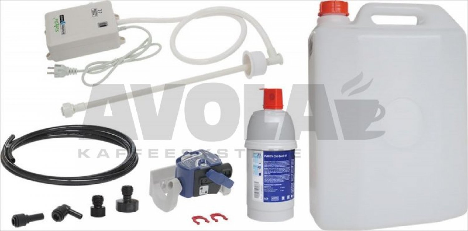 PATRONE PURITY C 50|WASSER PUMPE SINGFLO 220/240V|KANISTER 20L FÜR TRINKWASSER|PE-Schlauch ø 6 x 8 mm 2 mt|ANSCHLUSS F3/4 “BSP flaches Ende - Rohr ø 8 mm|WINKELANSCHLUSS Ansatz 8 mm - Schlauch ø 8 mm|GERADER ANSCHLUSS F3/8”BSP - Schlauch ø 8 mm|VERBINDER MIT ANSATZ ø 8 mm - Schlauch ø 6 mm|SPERRUNGSCLIP 5/16”|FILTERKOPF BRITA JG8|