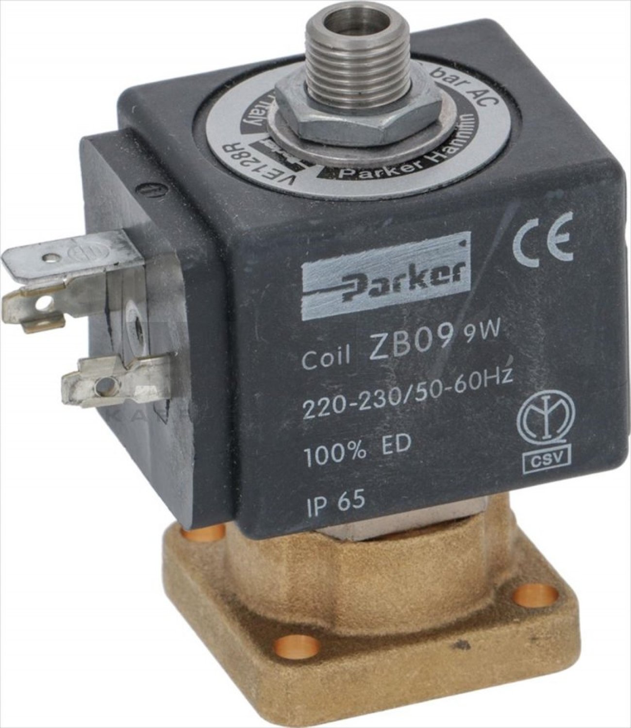 VE128R - scarico ø 1/8 - max 20 bar|tenuta in RUBINO - orifizio ø 1,3 mm|con bobina ZB09 9W 220/230V 50/60Hz|temperatura fluidi -40°C+140°C