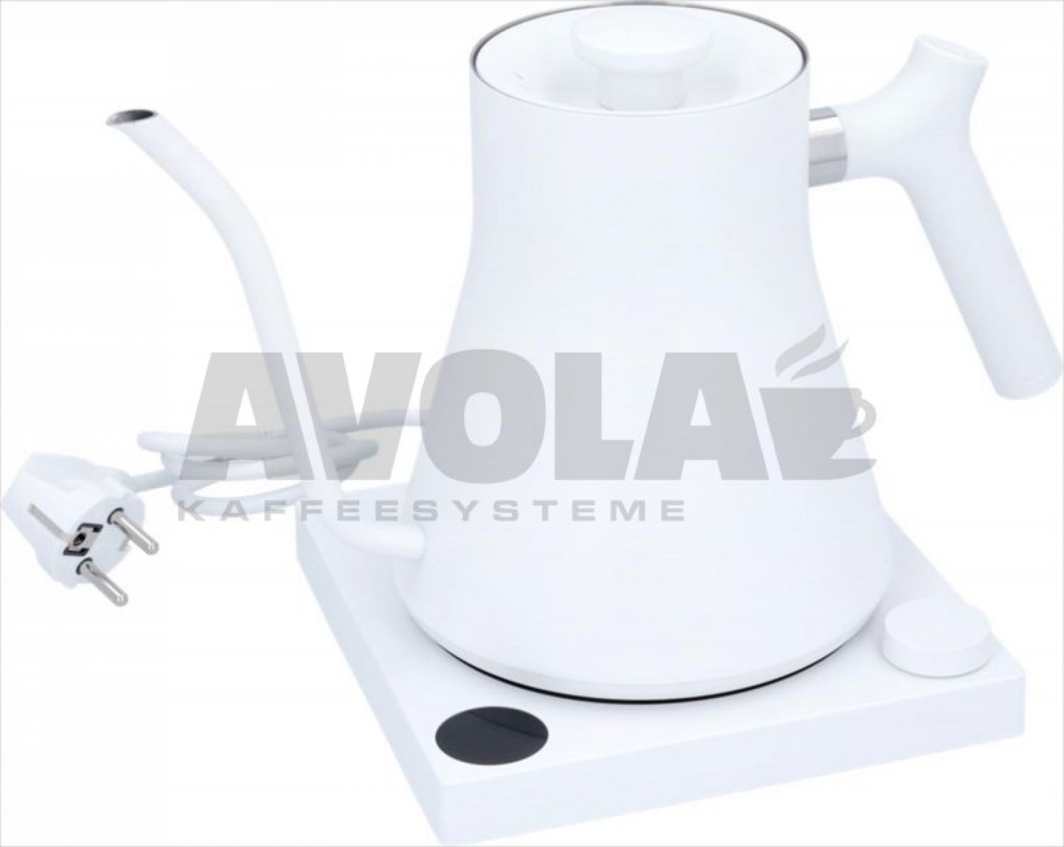 Komplett mit Kochplatte|220/240V 50/60Hz - 1200W|Wasserkocher-Fassungsvermögen 900 ml|Ergonomischer Griff, Präzisionsausguss.|Aus Edelstahl mit mattweißer Oberfläche. |LCD-Anzeige|Drehknopf mit Ein/Aus-Taste und präziser|Temperaturwahl|Temperaturwahlschalter Grad Fahrenheit/Celsius|Temperaturbereich: 135°F-212°F/57°C-100°C|Automatische Temperaturhaltetaste für|bis zu einer Stunde|Integrierte Stoppuhr|Automatisch aus|Abmessungen: 292x171x203 mm